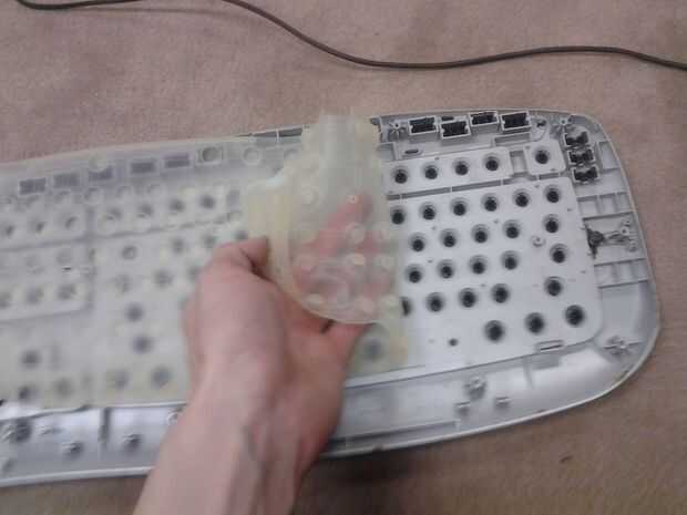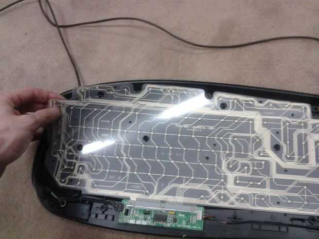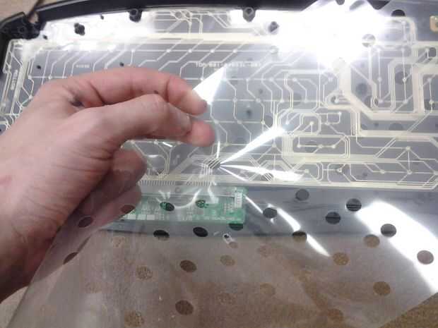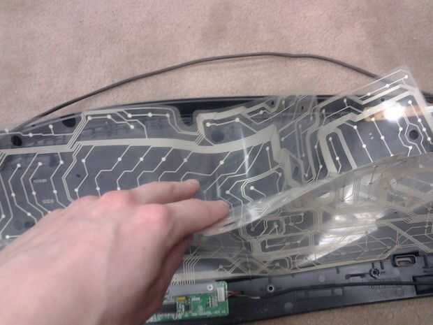 Encontrarás un montón de diversión cosas en el teclado! Hay una alfombra de goma blandita. Es inútil para este proyecto. Ponlo en tu gato. Hay un tablero de circuito de plástico transparente. Puedes hacer una billetera de esa... pero no es interesante para nosotros. Hay otro circuito de plástico transparente. Que gire en un protector de bolsillo o bien... otro sombrero para tu gatito curioso! sea cual sea. Encontrarás una tercera lámina de plástico con agujeros... eso es basura.