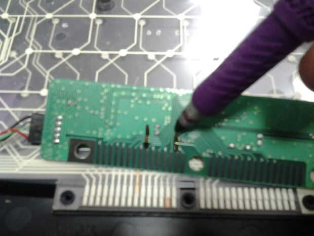 Saber qué cables ir a "Correo" en la hoja de plástico es bueno, pero tenemos que conectar los alambres de cobre reales a nuestro teclado. No trate de soldar a la lámina de plástico. Va a terminar en desastre. En lugar de otro mapa de las líneas destacadas de la hoja de plástico transparente sobre el circuito board(see image). Marque los dos puntos en la placa que debe estar conectado para poder enviar la señal clave de "Correo".