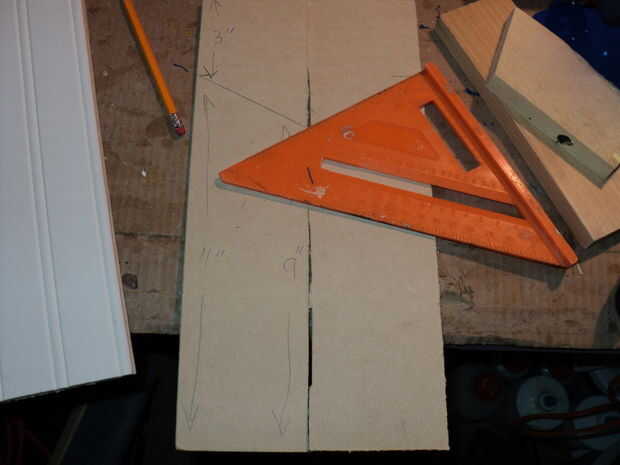 De una pieza lateral, Mida hacia abajo de 3 pulgadas y luego dibuje un ángulo de 30 grados hacia abajo desde ese punto. Queremos crear una cubierta inclinada para el cuadro de sugerencia.