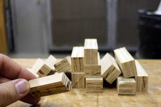 Corto madera contrachapada de chatarra en pequeñas secciones de madera que actúe como soporte y ayuda a mantener Unidas las paredes exteriores.