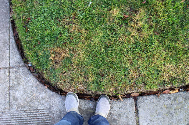 Quería que mi buzón de correo para tener una visión clara de mi casa, por lo que visualmente te hace sentido. Selecciona un lugar en el jardín cerca de la acera, luego condujo el extremo con púas del stand en la hierba.