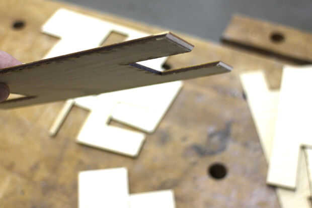 Usé un poco de chaflán en una mesa de fresadora. Como alternativa sólo podría arena cada borde para obtener un chaflán limpio.