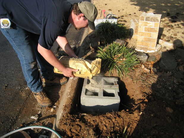 Primera cosa que necesitará hacer es averiguar donde desea que su buzón de correo, consulte con su oficina de correos local para averiguar lo que las regulaciones son, qué tan cerca debe ser a la acera, Cuánto mide el buzón debe ser ect. Después de que usted ha decidido dónde colocarlo que tienes que cavar un agujero. Hemos tenido que quitar un viejo buzón de mampostería que había sido ceremoniosamente por el parachoques trasero del coche. Del agujero debe ser 8" profundo de 16" x 16" o un poco más grande. Suficiente para caber los dos bloque en al lado del otro y como en la parte inferior como se puede hacer. Lugar los dos bloquean interior y utilizan su nivel para asegurarse de que son tanto nivel de adelante hacia atrás y de lado a lado, usted puede empujar piedras o suciedad debajo de aquí y allá para ajustar el nivel si es necesario. Ahora conducir la varilla a través de cada uno de los cuatro agujeros del bloque en el suelo dejando 4-5" que se pega para arriba del suelo dentro de los agujeros. A continuación se vierte la bolsa de 40 libras de mezcla de cemento Quickrete en el agujero (ambos dentro de los agujeros del bloque y en el exterior de los bloques), vierta en el agua según las instrucciones del paquete y mezclar con la paleta (Añadir grava o rocas a esta mezcla como vas a llevar hasta el nivel de la parte superior del bloque)