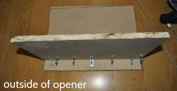 El abridor es 2 pedazos de madera en un ángulo de 90 grados.