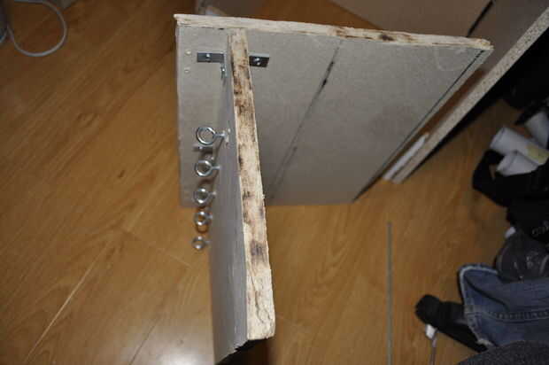 3 abrazaderas de las esquinas en la parte exterior de la apertura.