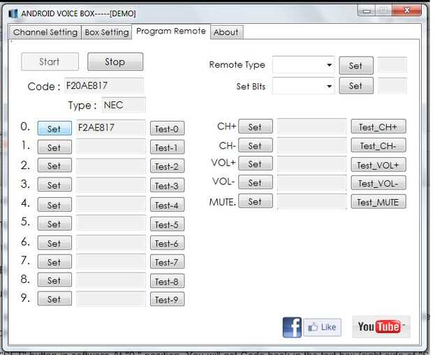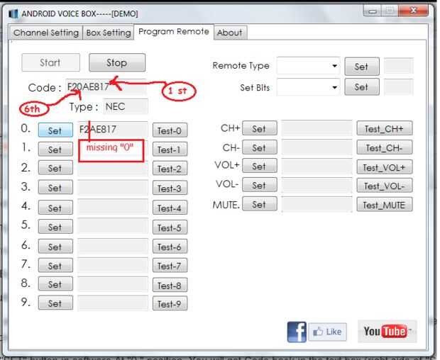 6.) luego pulsa el botón "SET" en software en la posición "0.", obtendrá el código en la caja de texto (lado derecho del botón "SET" en "0".)