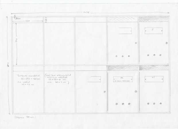Basado en mis recuerdos borrosos sobre los buzones de otras casas que he visitado y de un sistema pude verificar bien antes de empezar construyendo (1930-s, ver fotos) se me ocurrió una sencilla construcción hecha de madera contrachapada gruesa. No tiene todos los detalles que tiene el viejo. Y es visiblemente más grande según las recomendaciones del servicio postal de hoy. Pero creo que el estilo es reconocible y se adapta mucho mejor con la casa histórica de una cajas disponibles en el mercado del metal de hoja.