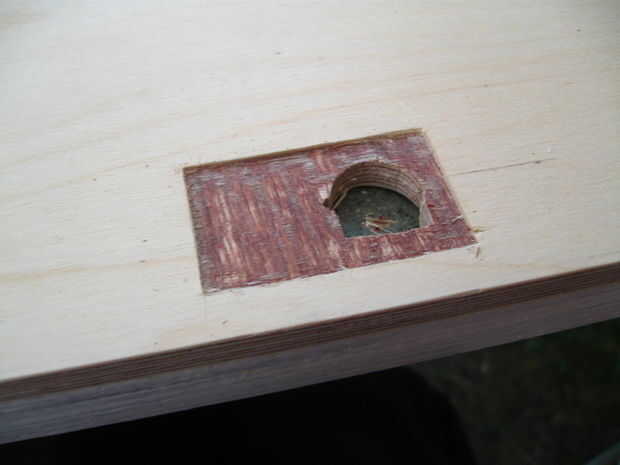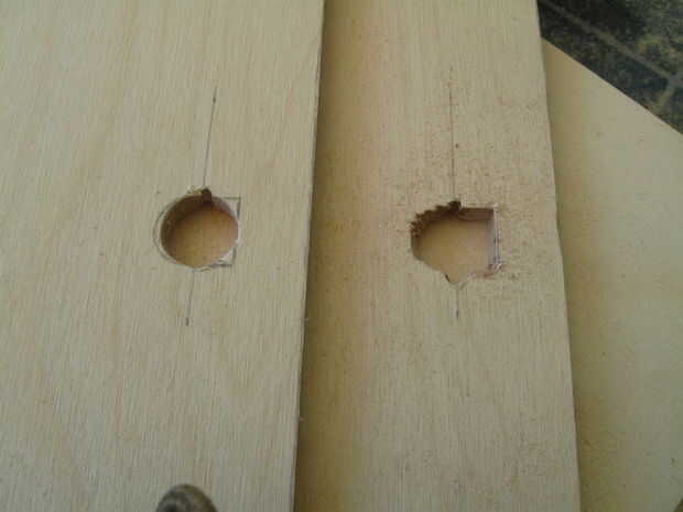 - Me quitan una capa de madera de la zona donde se instalarán la cerradura porque la cubierta seguía siendo demasiado corta, incluso con las nuevas ranuras.