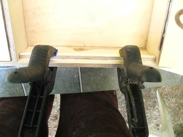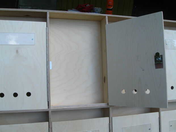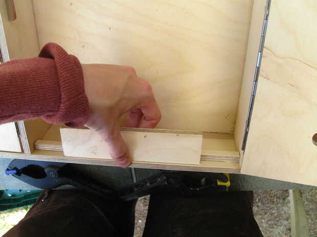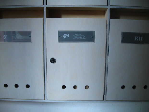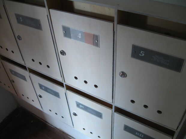 Que fino y flexy (como una hoja de papel) cosas caigan desde el buzón a través de la separación pequeña debajo de la puerta y para evitar que la puerta cierre demasiado profundo pegué un trozo de madera al piso justo detrás de la puerta.