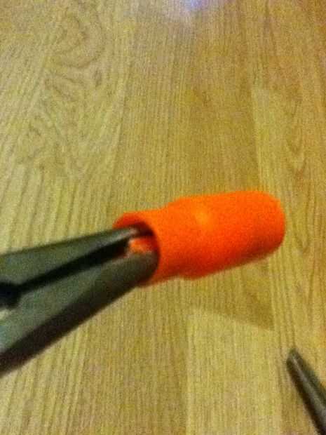 Ahora pega tus alicates en el depósito y la llave como gran parte de la clavija de dart, si es necesario te puede utilizar tijeras para este paso.