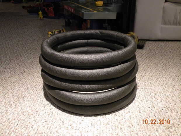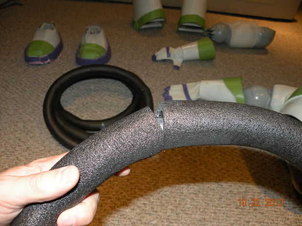 Usé 4" a 5" pedazos de manguera de pvc. Me caliente había pegado a la mitad de la manguera y había atascado en un tubo. Dejar enfriar y luego verifique que el tubo se ajusta cómodamente alrededor de su cuerpo. Que esto encaja cómodamente caliente pegamento la otra mitad y pegarla en el otro extremo del tubo. Si el tubo es demasiado corto puede Agregar un trozo pequeño para hacer la diferencia. Si añades que más asegurarse de que esto va en la parte posterior al usar el traje.