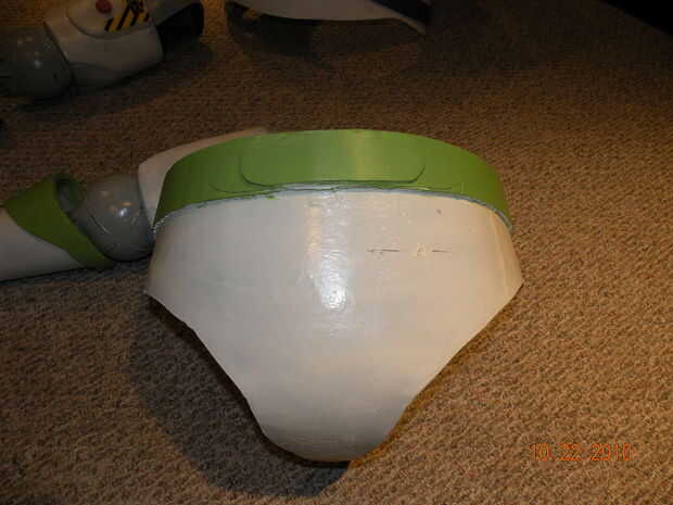 Utilizar espuma para hacer el cinturón. otra vez el cinturón será de múltiples capas. Use calafateo de pintores para suavizar cualquier asperezas.