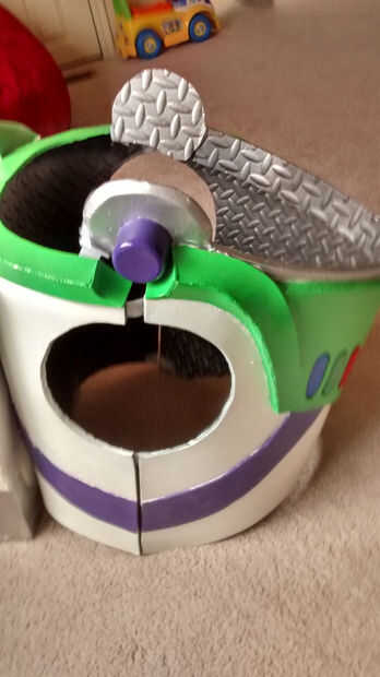 Construí mi primer traje de Buzz Lightyear, cuando salio Toy Story 2, para mi neice y cumpleaños de nephuew.  Ahora que tengo dos niños de mi propia decidieron renovar mi Buzz para la reedición de 1 y 2 en los cines.Buzz 2.0 tuvo un total de 14 días