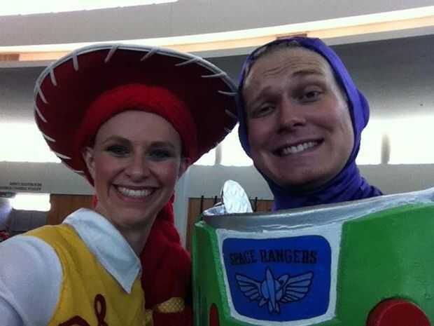 este año decidimos hacer Buzz Lightyear y Jessie los disfraces de vaquera.  Empezamos a principios de septiembre.  Tuvimos un montón de diversión en estos trajes. Pedían a la gente obtener sus fotografías con nosotros, o tratando de escabullirse de e