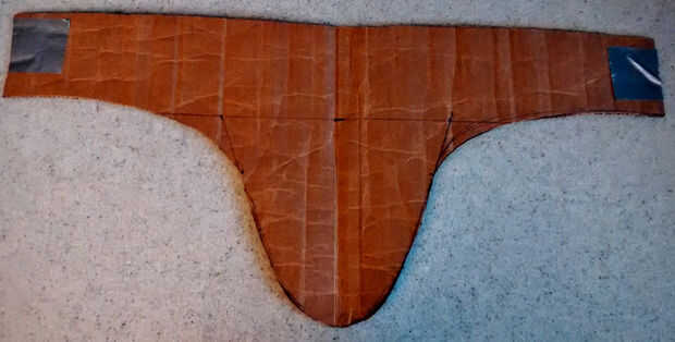 2. Para el frente, dibujar una forma de T con media la medida de correa y la longitud de entrepierna (* risa inmaduros *).