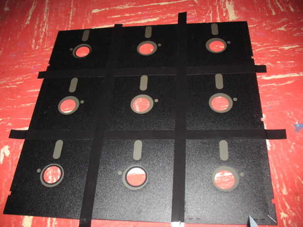 Cinta los discos juntos. No te preocupes mira porque habrá una capa de lona que la cubre (puede necesitar más cinta que el mostrado en la imagen).