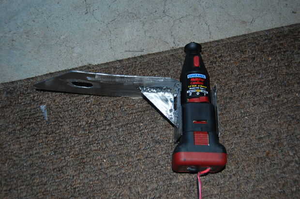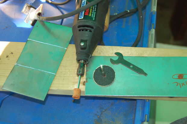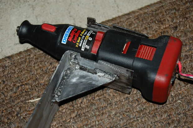 Después de marcar donde quería cortar y cortarlo, tuve que hacer la "U" en forma de soporte para sostener la dremel en lugar.