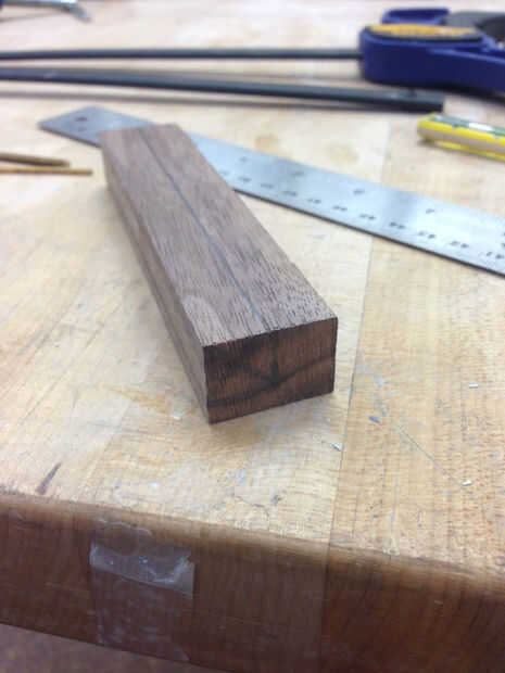 Comenzar por la medición de una 4 "x 1/2" x 1/2" pieza en el bloque de madera.