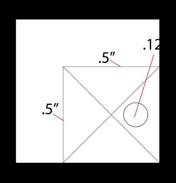 Pensar en el producto final; El orificio debe estar en consonancia con el punto central de la x dibujada en el paso anterior, pero debe ser cerca del borde que servirá como la apertura de la C. Mantenga en mente la cabeza del tornillo es mayor entonces el ancho de la varilla roscada.