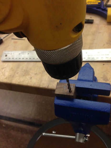 Usé un taladro de mano con un nivel de punto en la parte posterior de la misma para perforar un orificio cuadrado, pero una prensa del taladro funcionaría mejor 100 x.