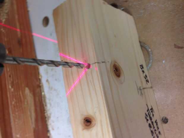 Utilizando la cinta de sección, marque la longitud de la sección untaped directamente en línea con el agujero en la madera. Esta línea se utilizará para crear el agujero transversal.