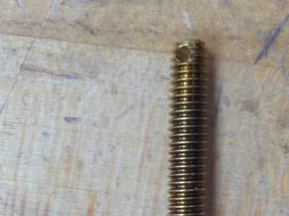 AHORA corte una pequeña sección del tubo de bronce o varilla y ponerlo a través del orificio. Utilicé una pinza a flatted los dos lados por lo que no podía quitarse.