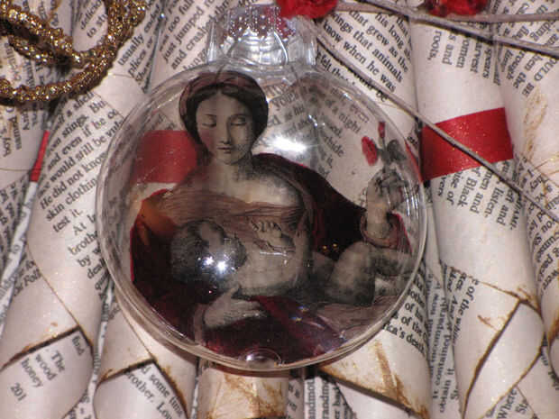 Paso 9 – imágenes de impresión deseada sobre el papel de la transparencia en el tamaño adecuado para caber en los adornos de plástico. Si es necesario, recorte y rodillo para insertar en ornamento plástico de color.