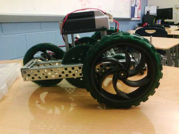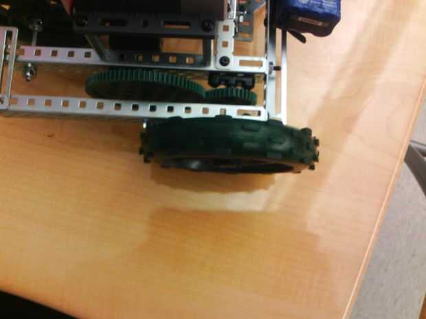 hemos utilizado estas ruedas ya que ofrecen un montón de esfuerzo de torsión y un poco de velocidad. La velocidad teórica es de 1.6 cm/segundos. La velocidad real es de 1,72 cm por segundo.