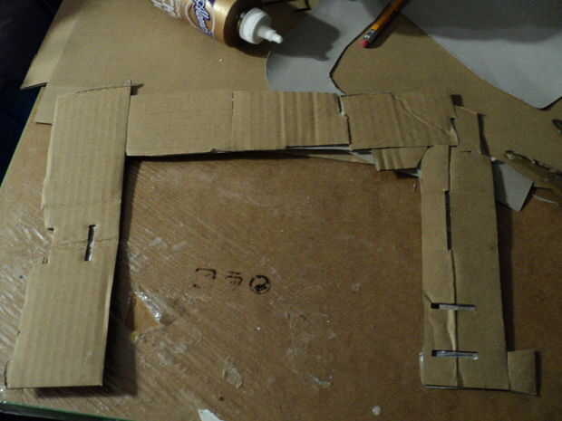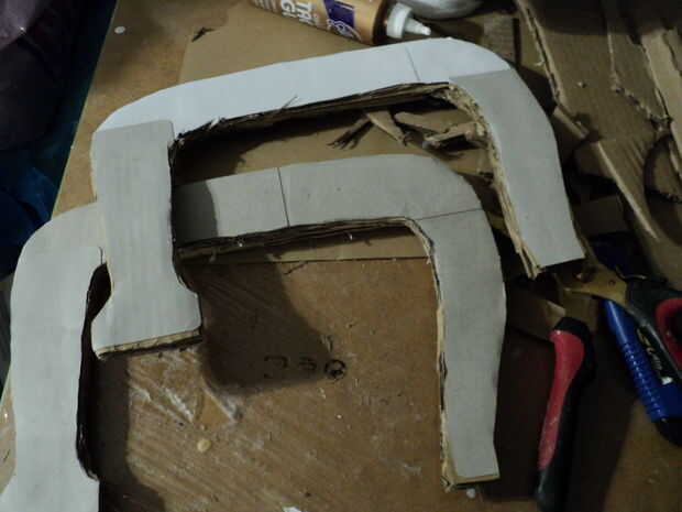 Lamina de cartón, es una buena idea cambiar la dirección de las ondas de cada capa para dar la fuerza mayor del producto global. Usted puede también juntar pedacitos pequeños de cartón para cubrir la forma entera. La siguiente capa debe cerrar la costura.