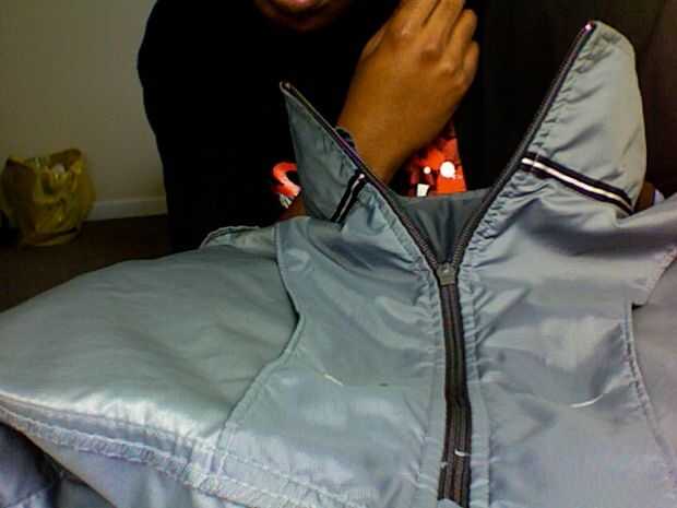Primer paso: con los materiales listos para su uso, vuelva al chaqueta y localizar que bolsillo va a utilizarse para albergar el dispositivo musical. (La chaqueta en el instructable tenía una bolsa de bolsillo estómago grande, así que opté por aquél).