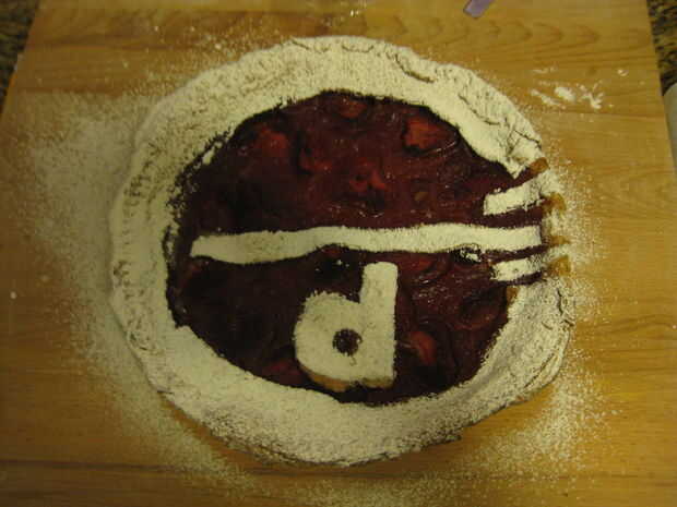 Estirar la segunda corteza de pastel. (Para este concurso, corté esta segunda corteza en una C, una línea para representar un símbolo de igual (=), el diámetro y un símbolo de la división y la letra d).