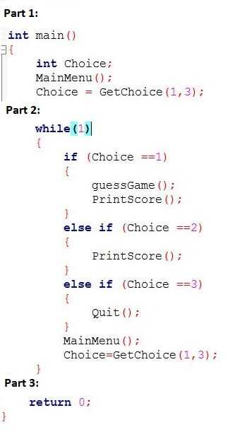 Después de la instrucción if-else se llaman extremos, menú principal y la función GetChoice , donde el usuario pueda hacer otra selecci6n.