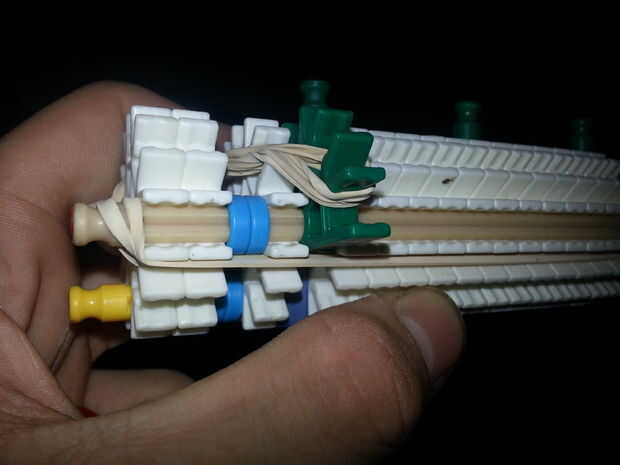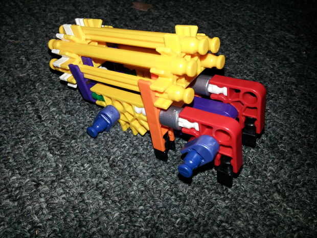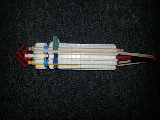 Foto 8-11) mi lanzagranadas y unos ángulos para ayudar a construirlo, la barra del rojo se cortó ya usé que, no sabe de dónde proceden, pero carajo, funciona: D