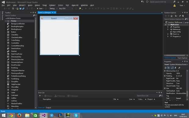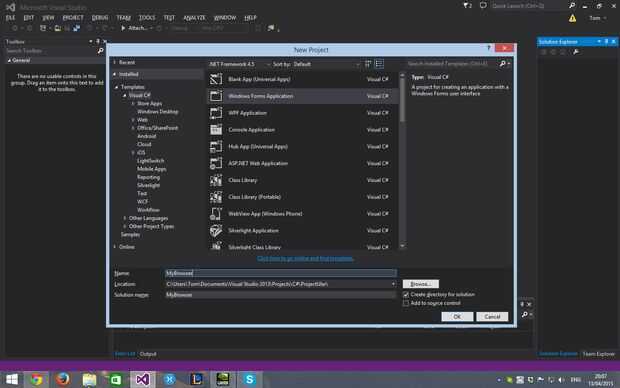 Aquí vamos a Visual C# y luego al aplicación de Windows Forms.