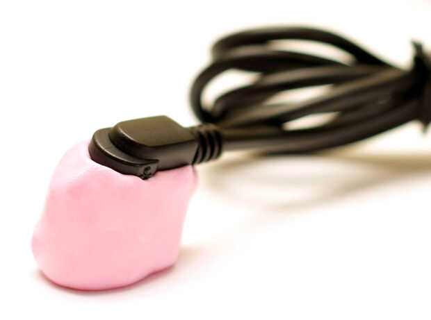 Después de algún tiempo (sugru es más rápido, mi goma de silicona necesita algunas horas), usted puede mantener el enchufe. Si las cosas van bien, los cables de un solo núcleo deben permanecer atados en el elenco. Compruebe que los cables estén en el lugar adecuado y la recta vertical.