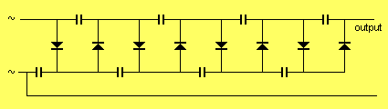 necesita más voltaje que la fuente puede entregar? Este es el dispositivo para construir.Basado en el doubler de Villard, en cascada en múltiples etapas, este circuito multiplicará un pequeño voltaje de CA en un enorme potencial.Con un transformador