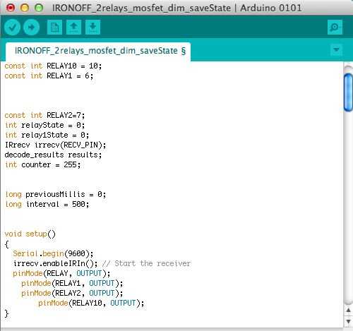 Aquí está el enlace al código de regulación sencillo usado con el sensor de detección de infrarrojos. He usado un control remoto universal sony como el transmisor.