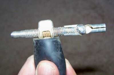 Hay circuitos de recolección inductiva de la bobina puede encontrar en Internet. Uno de ellos podría integrarse en esta luz de regulación. Opté por usar una conexión sólida. Yo he experimentado con alambre en espiral elástico que debía para caber en el extremo de la clavija y en el extremo del cable de bujía. No eran totalmente satisfactorios. Finalmente, ponga un trozo de varilla de 1/4 de pulgada en un taladro y llevó a cabo el final cerca de una piedra de moler de spinning. Me volví un perfil similar a lo que encontrará en la parte superior una bujía. Fijar un terminal de un kit que te permite hacer tus propios cables de bujía. No es elegante, pero funciona.