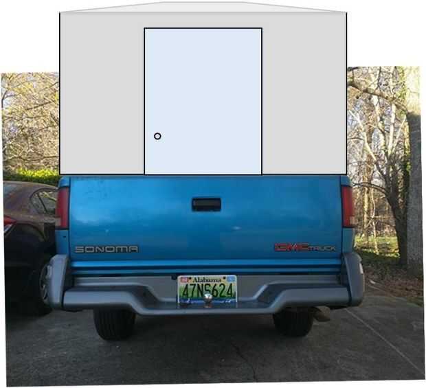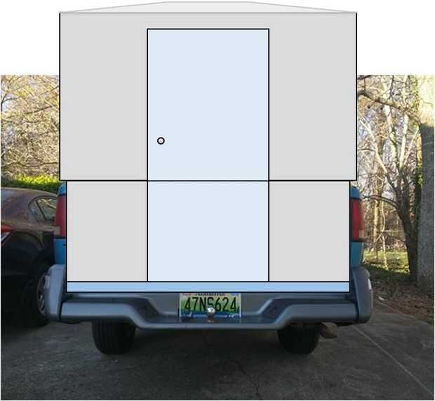 Quería construir un camper de lágrima pero no tengo un lugar a otro vehicle\trailer en mi entrada del parque. Así que decidí construir un camper cab-over para mi camioneta en lugar de otro. También quería ser capaz de llevar mi kayak en ella como sea necesario sin tener que quitar el camper. Mi diseño tendría que ser capaz de conducir el camión con la puerta trasera para arriba pero al camping la puerta trasera reducirse lo que permite una puerta de tamaño completo en la parte posterior. La puerta tendría una sección inferior que se abaten en uso. Quería que el camper para ser tan ligero como sea posible, pero todavía robusto, así que he elegido utilizar madera contrachapada de 1/8 cubierta con "De pobre hombre fibra de vidrio". Más en eso más tarde...