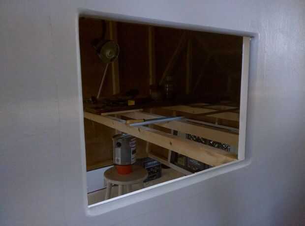 Para mantener el costo mínimo decidí usar fix vidrio para las ventanas laterales. Coloqué una tira de sellador de silicona alrededor del interior de la estructura antes de instalar el vidrio, que se celebra en lugar de 3/8" cuadrado de ajuste. La ventana frontal es un slider de vinilo. Desde entonces he quitado la ventana delantera para mejorar el acceso a la cabina del camión. Que cortar las piezas de espuma de célula cerrada y colocada alrededor de la abertura entre la cabina y la caravana.