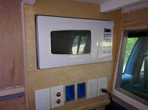 En lugar de utilizar un solo panel para la eléctrica que decidí usar cajas plásticas eléctricas para un enfoque modular. La iluminación y los puertos USB funcionan con el sistema de 12 voltios y las tomas se conectan a un enchufe debajo de la cama del camión. Toda la iluminación interior es tiras de LED.