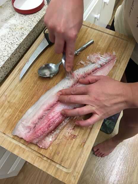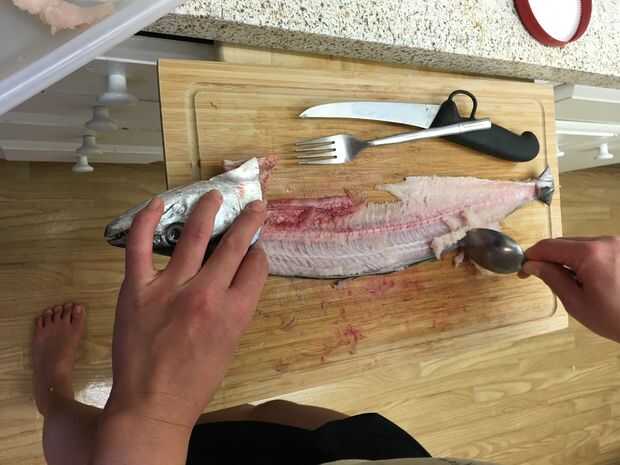 Una vez que el pescado es fileteado, comienza raspando la carne de los huesos piel y centro con una cuchara y tenedor. La textura final de los peces será mucho como carne molida.
