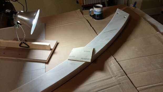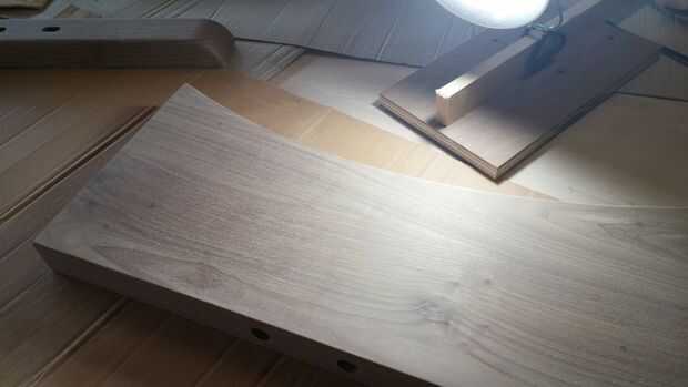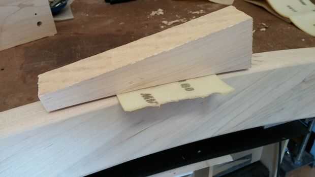 Los bordes sin embargo eran mucho más difíciles, sobre todo debido a la veta y curvas. Una de las maneras que lijar estas piezas fue utilizar un pequeño pedazo que era chatarra durante el proceso de conformación - intercala un trozo de papel de lija entre el pedazo y la curva, y el ajuste perfecto hecho lijado ir mucho más rápido. Otra vez puede ver que estoy utilizando el método de iluminación para detectar cualquier pequeña manchas. También se puede ver que los orificios con los agujeros del tornillo CNC son cada vez menos sensibles después de lijado final.