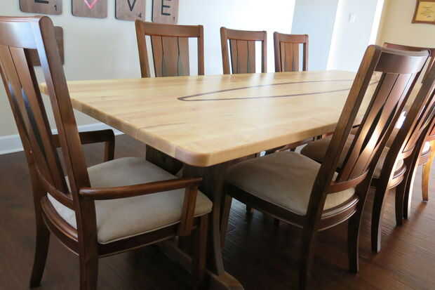 También, planeado originalmente hacer las sillas para la mesa-que resultaron para ser demasiado ambicioso para mi línea de tiempo. Después de hacer un prototipo, he decidido que chairmaking es otra especialidad que probablemente me tome toda una vida para dominar. Mi prototipo es robusta y se ve bien, pero es sin duda no lo que yo llamaría cómoda. Mi esposa encontró en Overstock.com, así que concedió para comprar las sillas y pasar a otro proyecto.