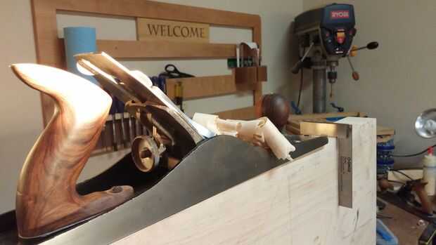 Para aplanar los bordes donde pegue las piezas corta a la pieza grande, utilizar aviones de la mano (principalmente mi #7 artesano que he restaurado de un montón de saldos). Usar un cuadrado pequeño maquinista para comprobar el resultado. Me voy a hacer el revestimiento con la cnc antes de cortar la soga, tan sólo podría conseguir esta plaza "muy cerca" de borde a la cara desbastada.
