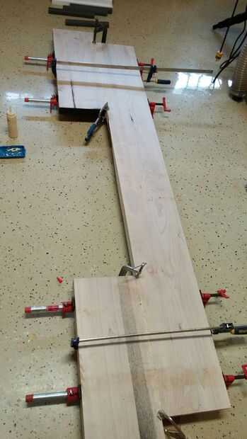 Me puse un 8/4 (2 pulgadas de espesor) pieza de arce suave de Madera fina aquí en Austin. Era cerca de 10 pulgadas de ancho y poco menos de 12 pies de largo. Cortan un par pies de cada lado para que los extremos se podrían pegar para crear doble ancho donde desciende la curva elástica.