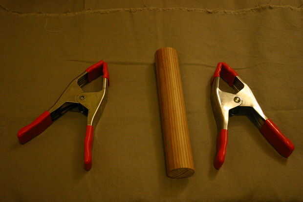 De un palo, usted necesita algo lo suficientemente delgada para caber dentro de las mordazas de la pinza y lo suficientemente gruesa como para mantener la fricción entre las mordazas de la pinza. Para calificar la primera parte de la declaración anterior: es el diámetro del palo, más cerca juntos serán los mangos de las pinzas, y por lo tanto la más estrecha será la base de "caballete".