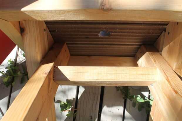Esto puede parecer como refuerzo excesivo, pero esto también tendrá un orificio de 1 1/2" para a través de él en el siguiente paso que le ayudará a sostener el paraguas sombra constante.