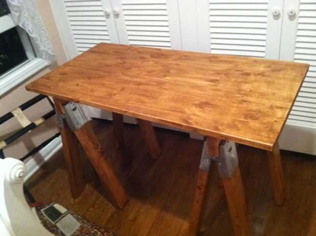 no he construido mi banco de trabajo de sueño todavía, así que necesitaba una mesa de trabajo grande que pude configurar rápidamente hasta donde lo necesitaba. Tengo un par de caballetes que utilizo todo el tiempo y una plataforma de aproximadamente