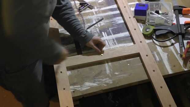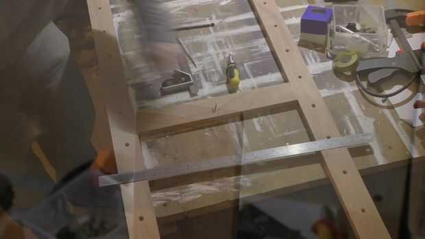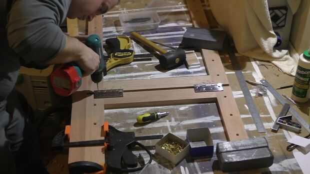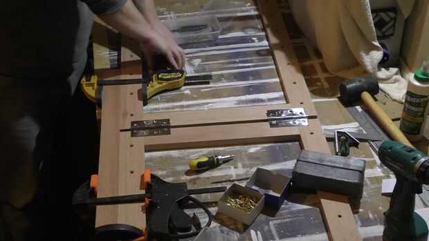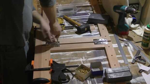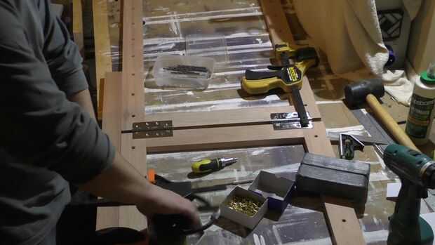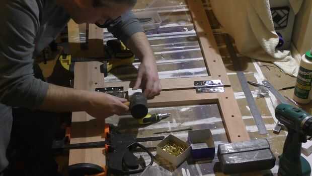 Si la pieza se va a plegar bien es importante que ambas partes están perfectamente alineadas cuando las bisagras están equipadas y que las bisagras estén alineadas en el borde superior. Esto es bastante fácil lograr las piernas a una pieza de madera recta con bordes de sujeción y solo alineando las esquinas de la bisagra con el riel superior.